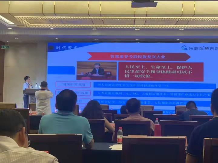 按会议安排乐聆公司人员作智慧养老模式的典型介绍,乐聆作为国内的物联网智慧康养技术前沿企业,张国旺总监的发言受到了同行高度关注。张总从目前我国的人口老龄化现状,提出“让世界没有难做的养老服务”方案,始终致力于为政府、 机构、企业、个人提供智慧健康养老综合服务解决方案。“乐聆方案”是在物联网健康大数据平台基础上,去建立“智慧终端+系统大数据分析平台+专业服务”全生态,打造出智慧社区的“无围墙养老院”。通过“云-管-端”技术服务,为政府提供监管平台,实现对社区居家康养目标人群的体况安全、医疗护理、健康管理服务、精神慰藉等全域、全员、全人、全时、全面的“5Q管理”。